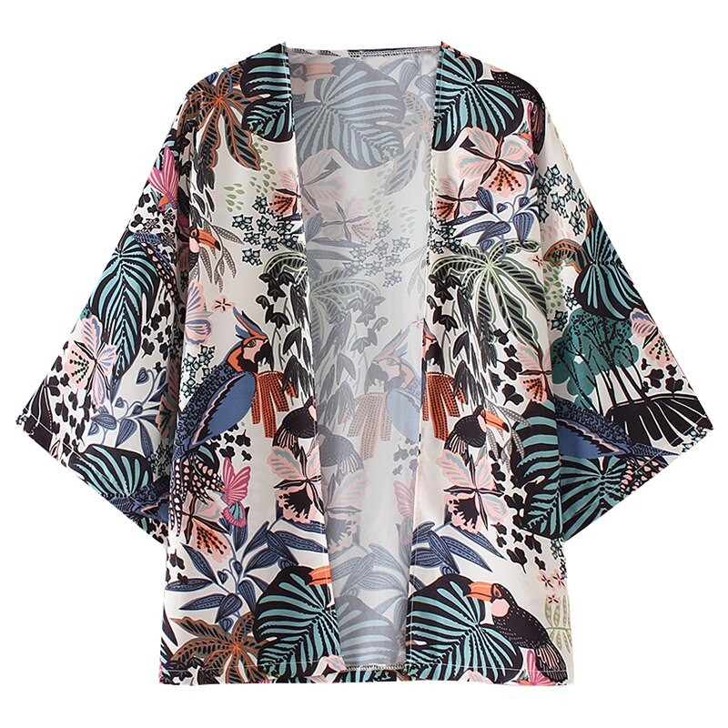 Coperta alla moda con stampa vivace. Ha maniche corte ed è più ampia.