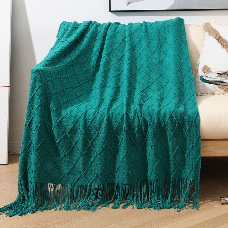 Pagina iniziale Pagina iniziale Casa e articoli domestici Tessili per la casa Coperte Coperta lavorata a maglia con frange 127 x 152 cm