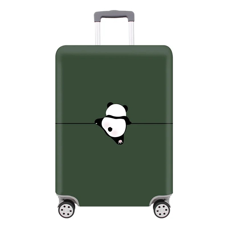 Copertura protettiva elastica per valigia da viaggio 58–63 cm in poliestere e spandex verde scuro con stampa animale di panda