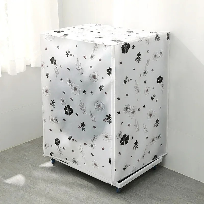 Copertura protettiva per lavatrice 62 x 55 x 86 cm Fiori in bianco e nero Copertura bianco-trasparente con zip per lavatrice a carica frontale