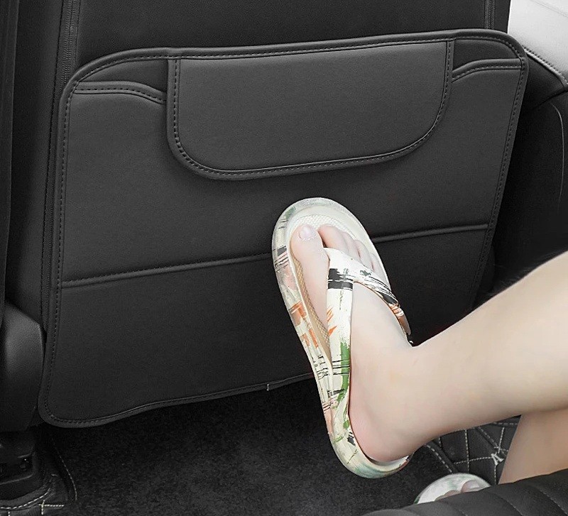 Copertura pratica per la parte posteriore del seggiolino auto che protegge da graffi, sporco e usura. Materiale impermeabile, facile da pulire e tasca per piccoli oggetti. Descrizione completa
