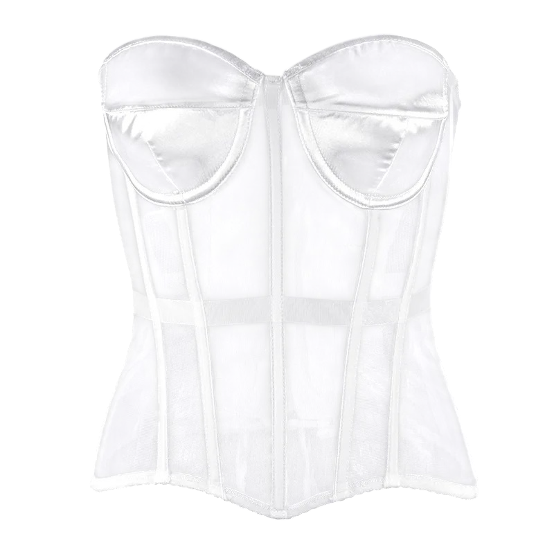 Modello sensuale trasparente con lacci sul retro che mette in risalto la vita e il décolleté. Il materiale elastico garantisce comfort e una perfetta vestibilità. Descrizione completa