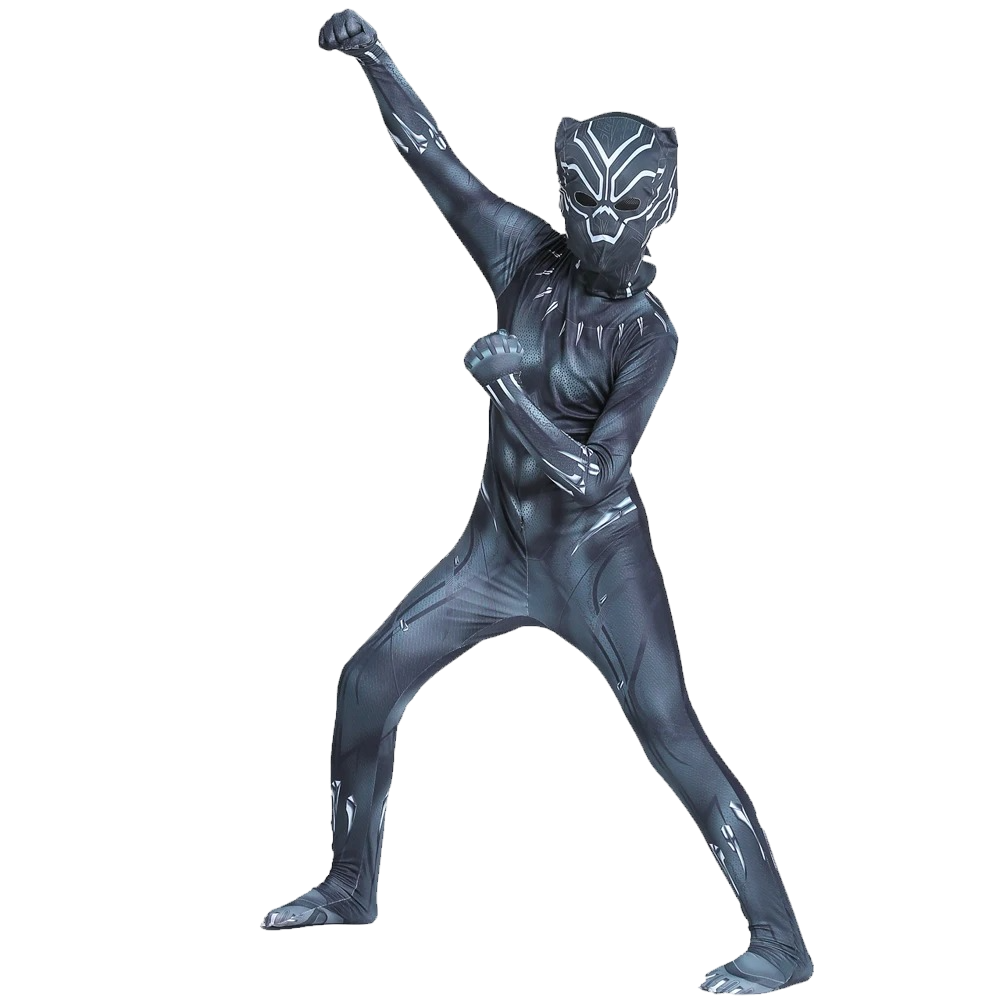• Design autentico: Il costume riproduce fedelmente l'aspetto iconico di Black Panther dai film Marvel, inclusa la maschera e i dettagli caratteristici.