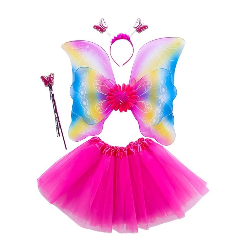 Contenuto della confezione: 1x ali di farfalla, 1x cerchietto, 1x bacchetta, 1x gonna