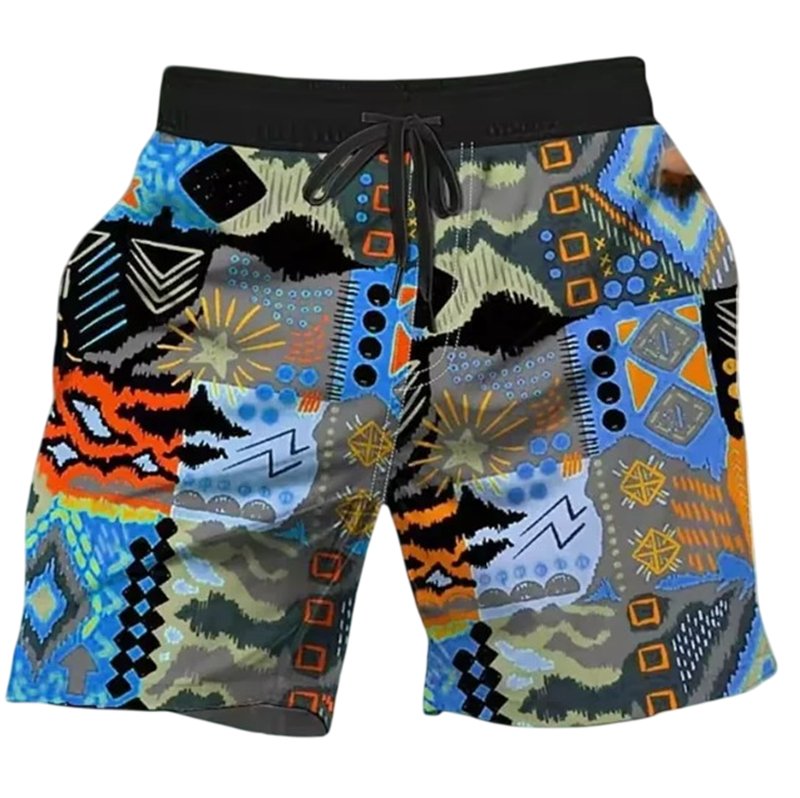 Costumi da bagno moderni e colorati con motivi in poliestere leggero e coulisse in vita, ideali per la spiaggia, la piscina e una vacanza estiva attiva. Descrizione completa