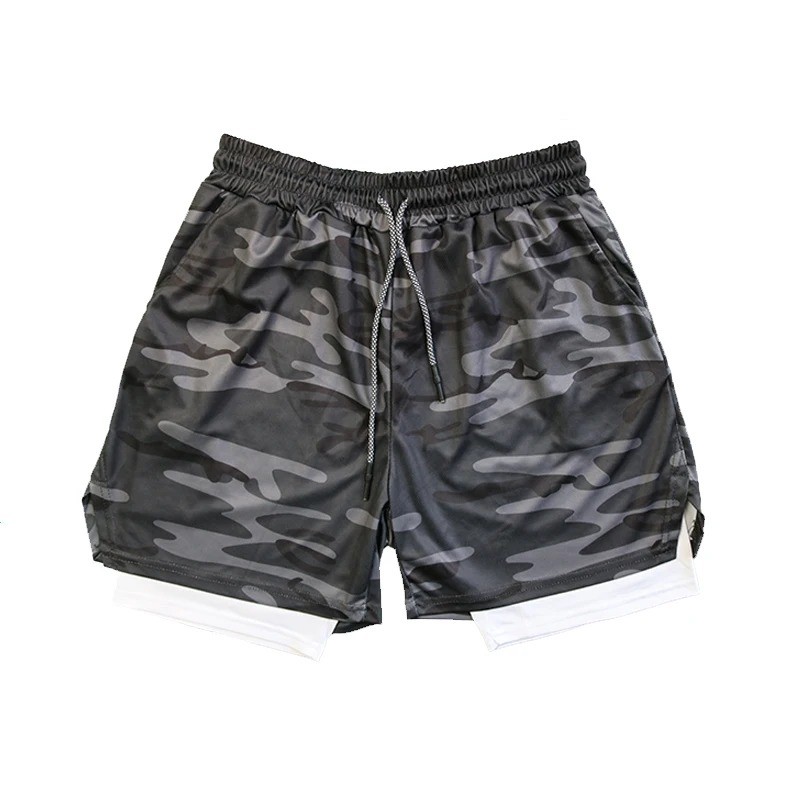 Costumi da bagno da uomo in poliestere a pantaloncini camouflage a doppio strato con strato interno bianco, con cordino e tasche, sportivi estivi
