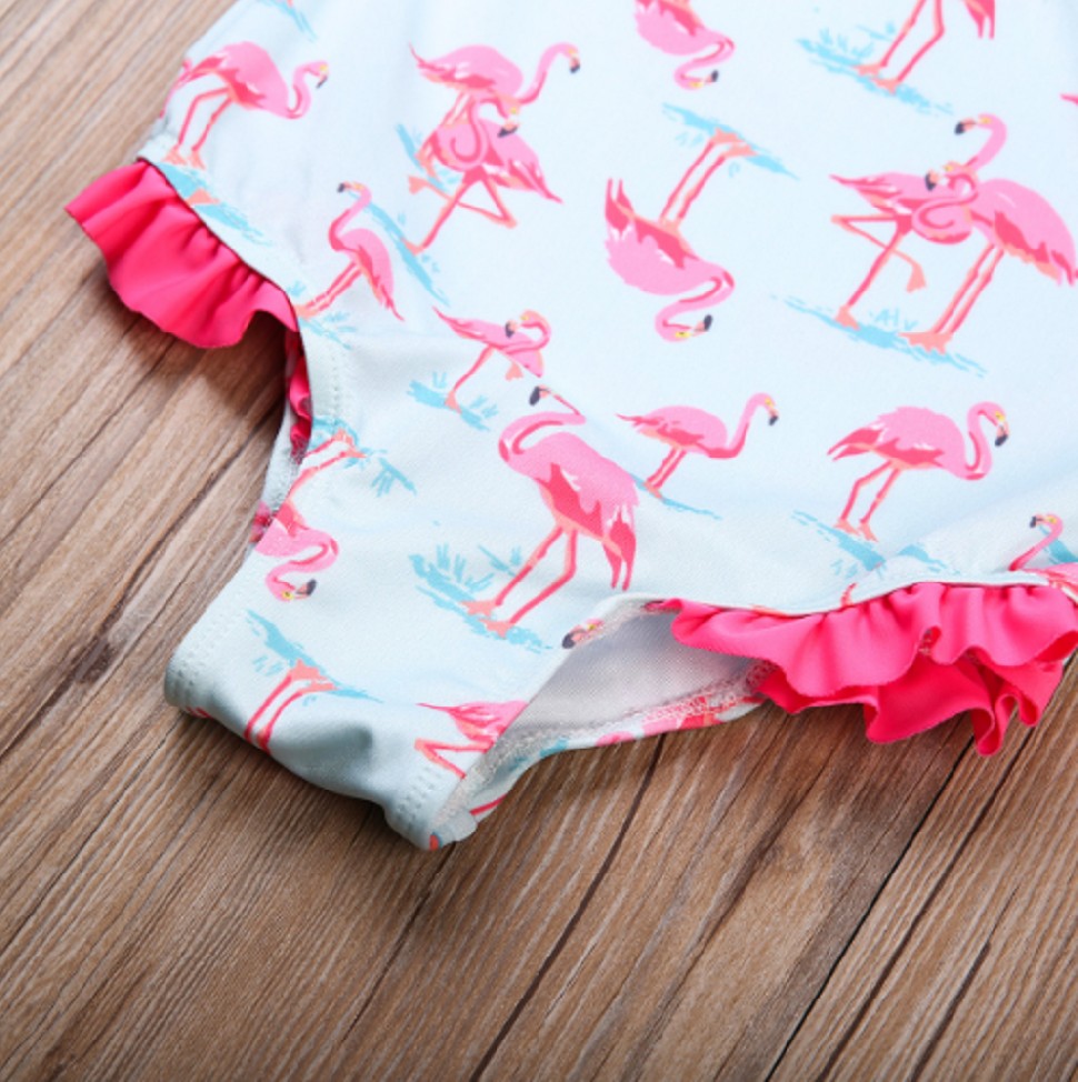 Costumi da bagno interi adorabili con stampa di fenicotteri rosa faranno felice ogni bambina.