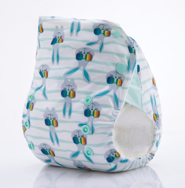 Krásné plenkové plavky s potiskem karikatury zajíčků si Vaše dítě zamiluje.