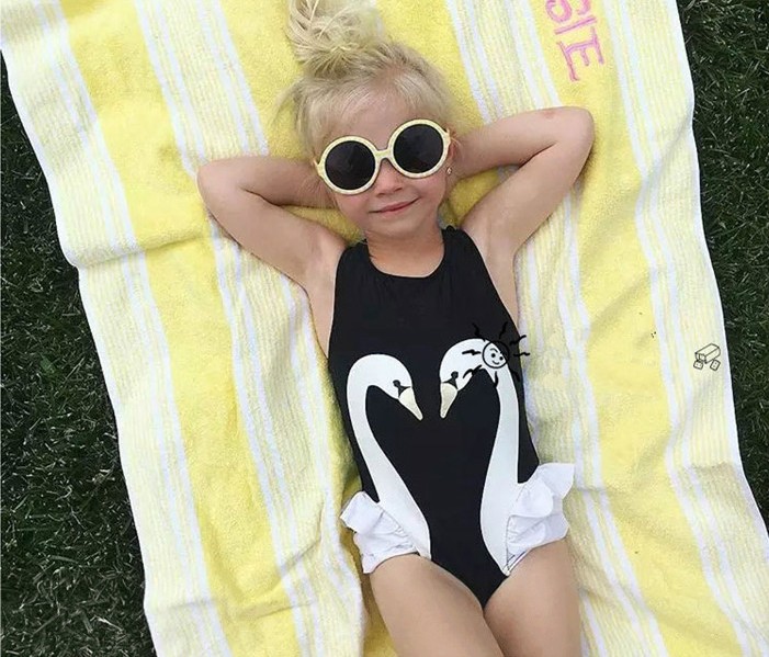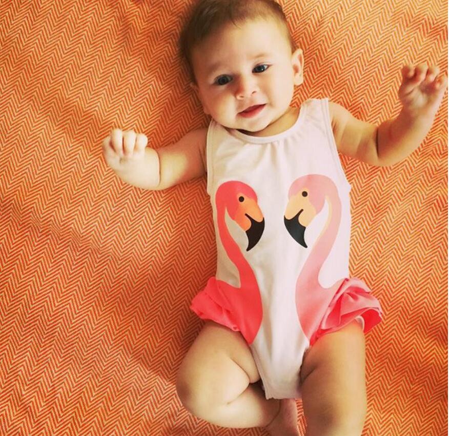 Bellissimo set per ragazze con stampa di fenicottero e cigno, composto da un costume da bagno intero e un cappellino da bagno.