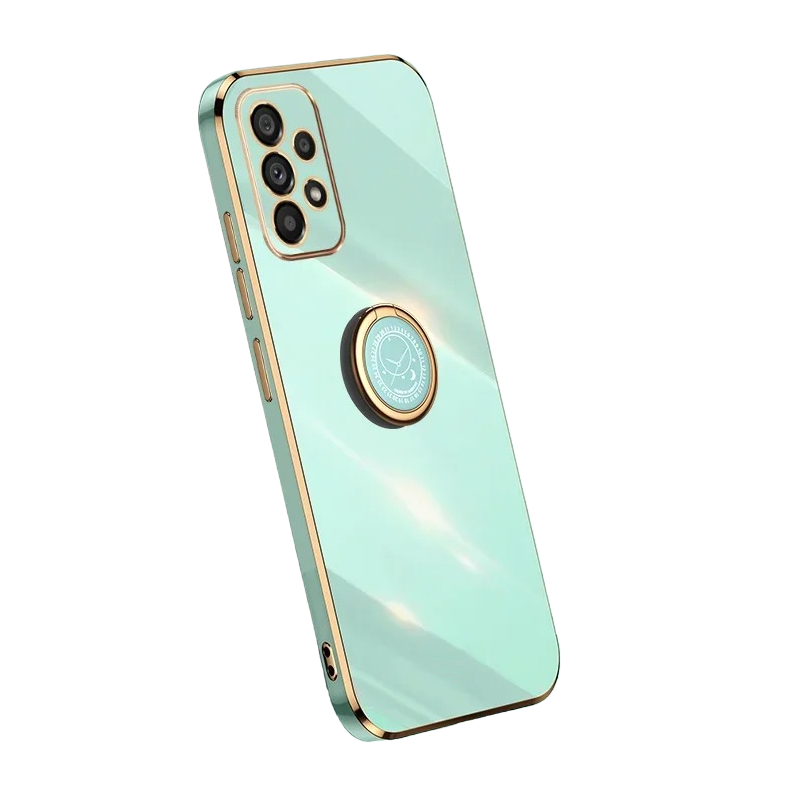 Cover in silicone con bordi dorati e supporto per Samsung Galaxy A04 è l'accessorio ideale per il tuo smartphone, che unisce un design elegante a una funzione pratica.