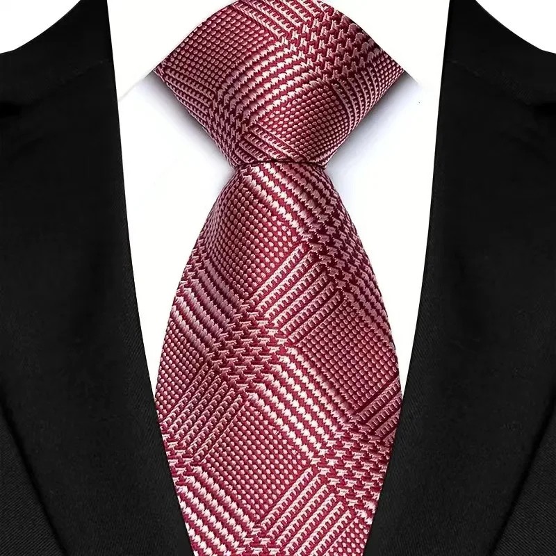 Cravatta rossa a quadri in seta 145 x 8 cm Cravatta da uomo di lusso Accessorio elegante Seta di alta qualità per eventi business e sociali
