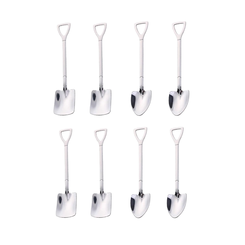 I cucchiaini a forma di pala e di badile sono realizzati in acciaio inossidabile di alta qualità e sono resistenti. Questi cucchiaini con un motivo unico sicuramente aggiungeranno un tocco personale ad ogni pasto. Inoltre, sono un ottimo inizio per una conversazione durante la cena!