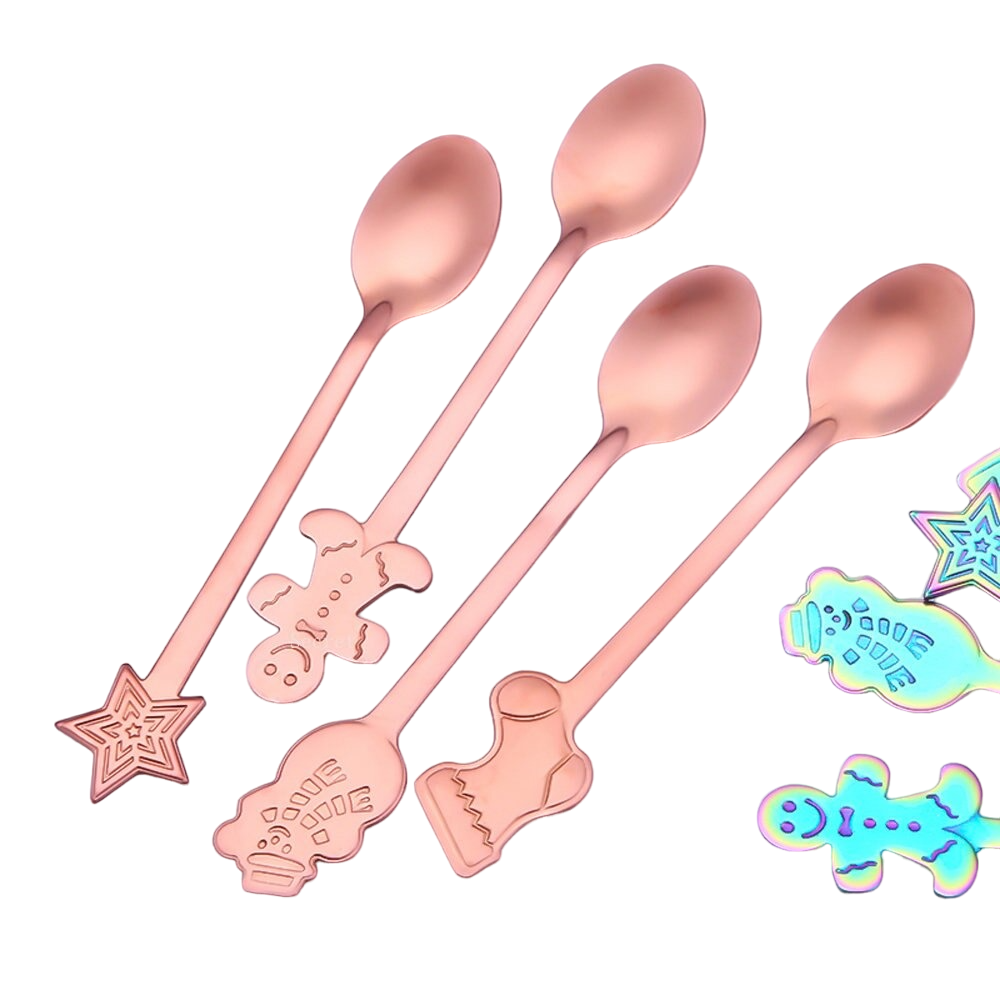 Questi cucchiaini sono realizzati in acciaio inossidabile e sono eleganti. Ogni cucchiaino è decorato con un diverso motivo festivo. Questi cucchiaini vi porteranno sicuramente gioia, sia che vogliate mescolare un po' di atmosfera festiva o aggiungere eleganza alla vostra tazza di caffè del mattino.
