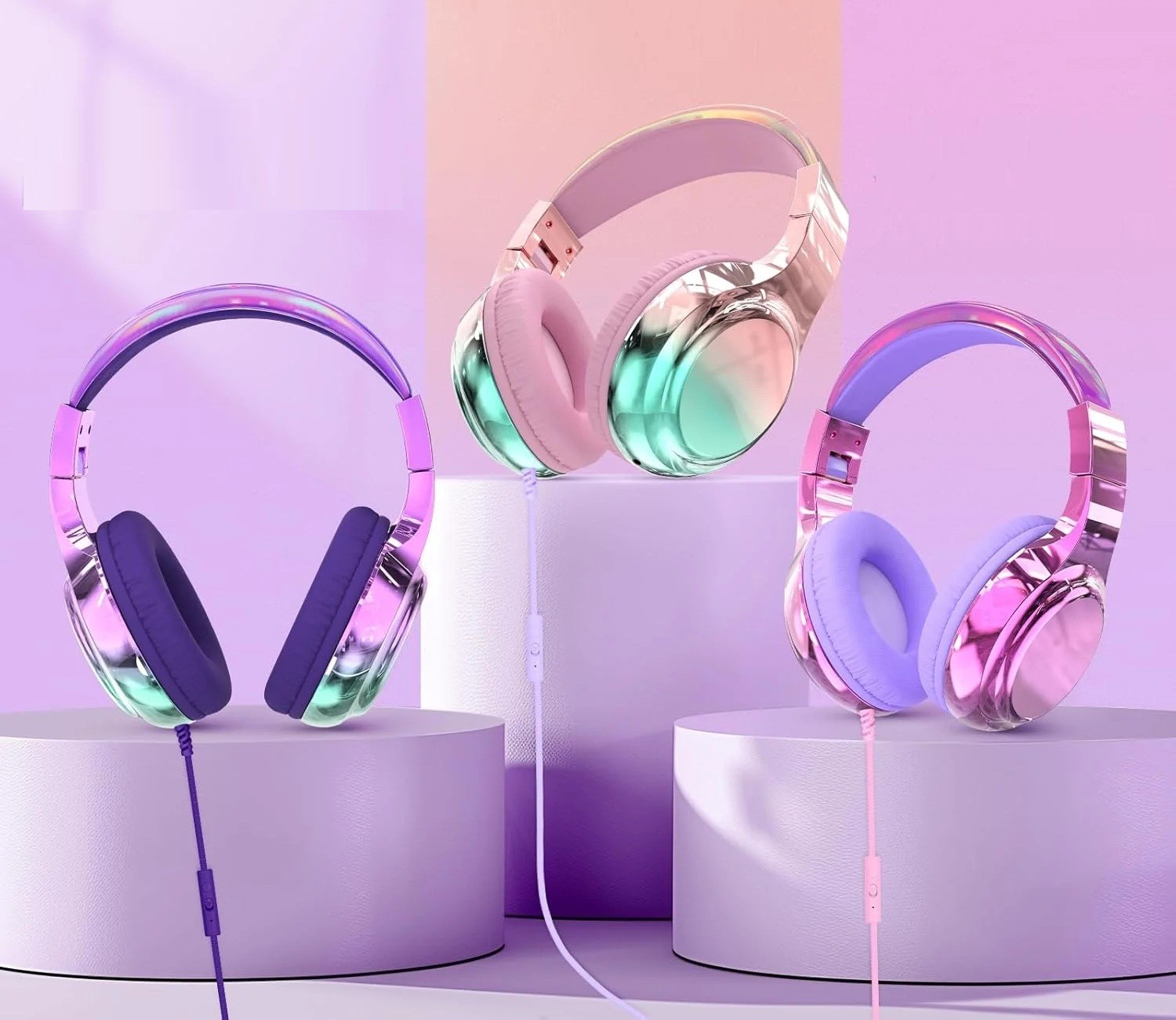 Cuffie cablate per bambini over-ear con limitazione del volume a 85/94 dB, jack da 3,5 mm, microfono, struttura pieghevole per la scuola o i viaggi