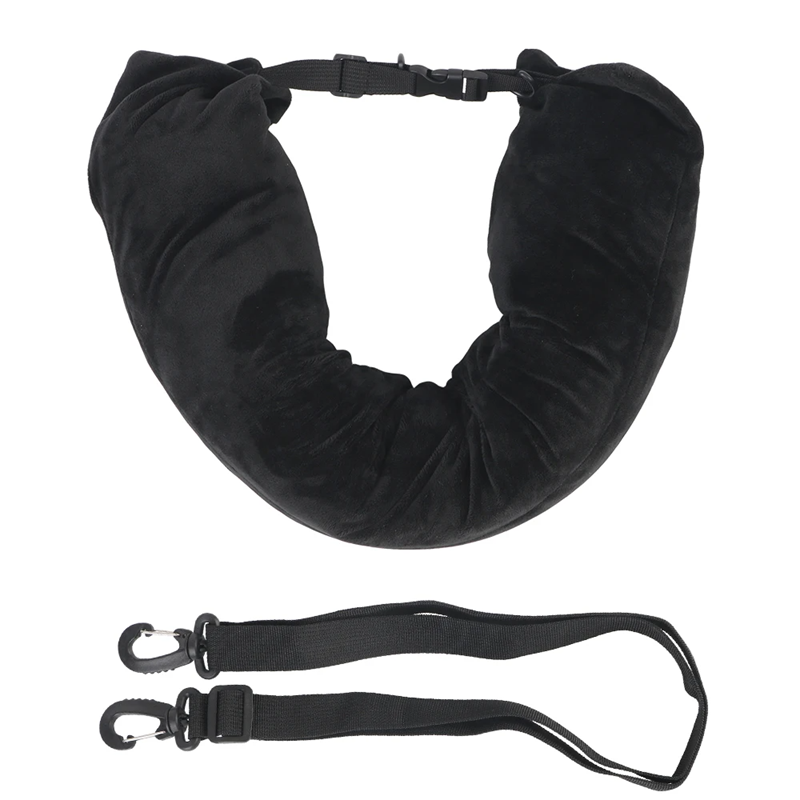 Cuscino da viaggio gonfiabile a forma di U 75x18 cm Supporto per la testa con zip Cinghia in nylon con fibbia Cuscino da appendere agli abiti