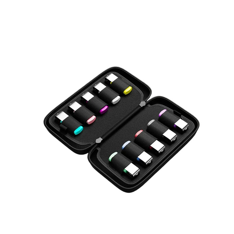• Disposizione interna a doppio strato – due strati separati per un'organizzazione efficace di USB flash drive, schede SD, microSD e altri supporti