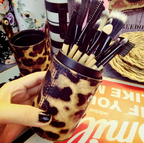 Custodia in pelle per pennelli da trucco