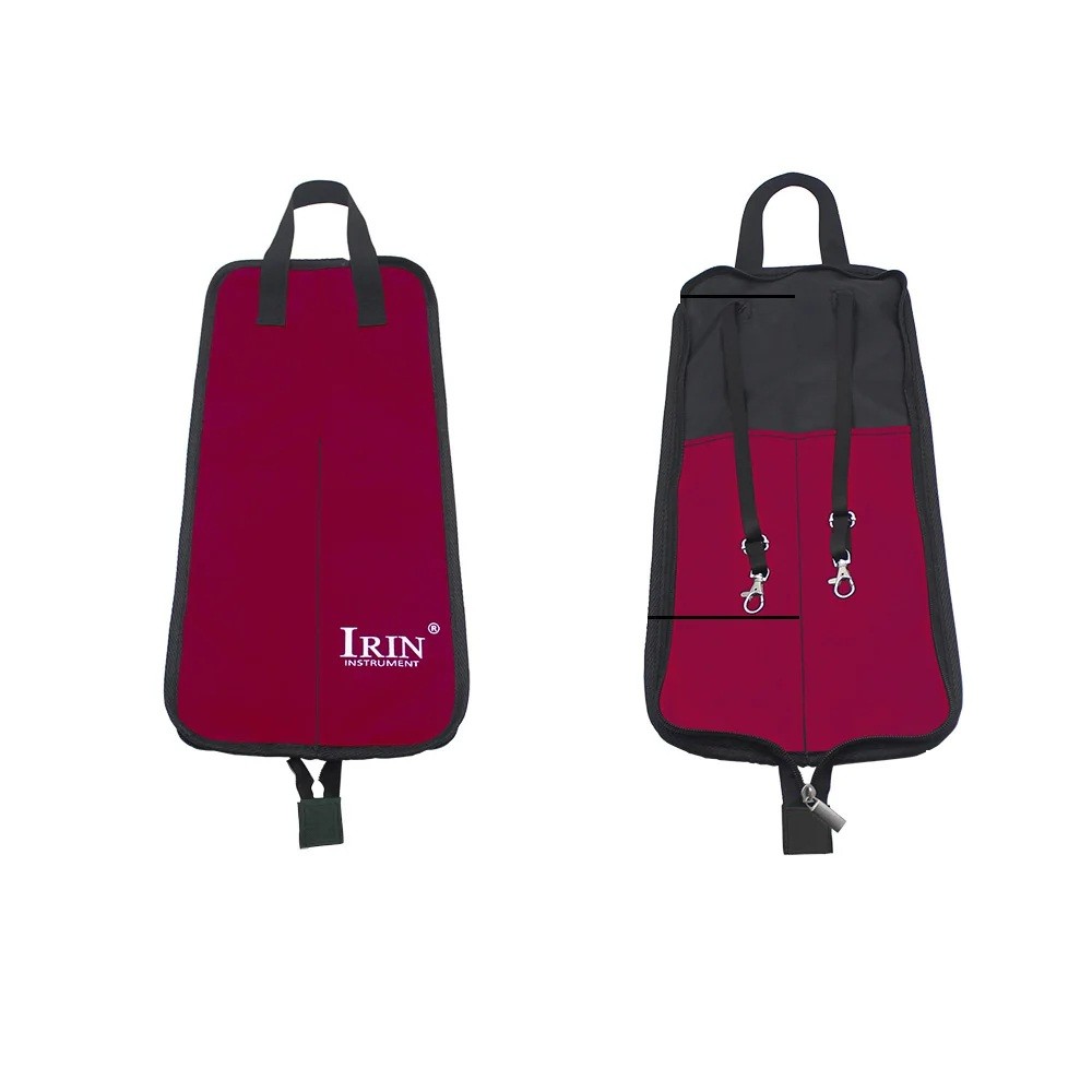 Custodia resistente in cotone per bacchette, impermeabile e traspirante, con tasca e cinghie per appenderla. Soluzione pratica per riporre in sicurezza l'attrezzatura del batterista. Descrizione completa