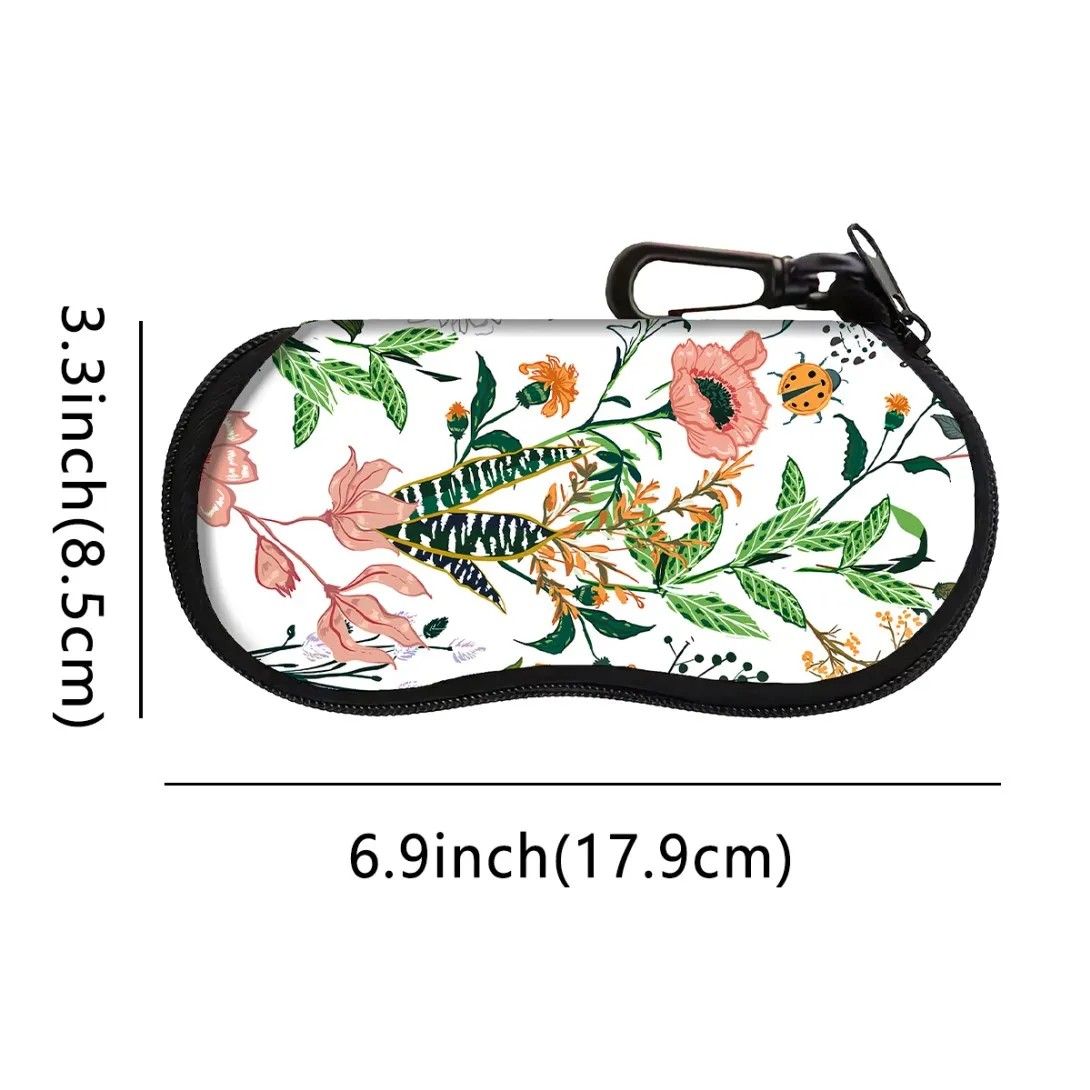 Custodia per occhiali 17,9 x 8,5 cm Motivo fiori di campo e coccinelle Chiusura a zip Moschettone per attacco Custodia protettiva per occhiali