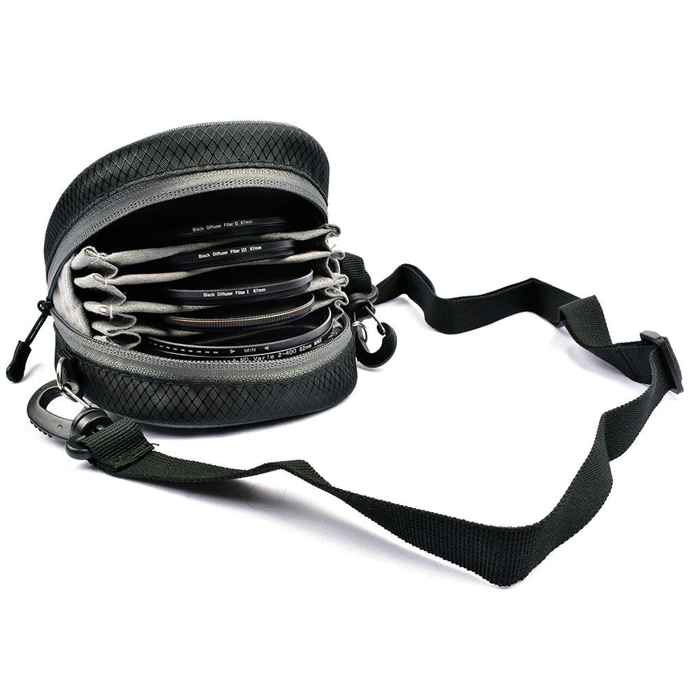 La custodia è un accessorio pratico per chi lavora con più filtri e desidera tenerli al sicuro. Aiuta a mantenere l'ordine negli accessori fotografici e riduce il rischio di danneggiamento durante i trasporti. Grazie al suo design leggero e compatto, è la scelta ideale per fotografi in viaggio, escursioni e durante riprese professionali. La facile maneggevolezza consente un rapido accesso ai filtri senza ritardi. Se stai cercando una soluzione compatta e funzionale per proteggere filtri e obiettivo, questa custodia soddisferà le esigenze quotidiane.