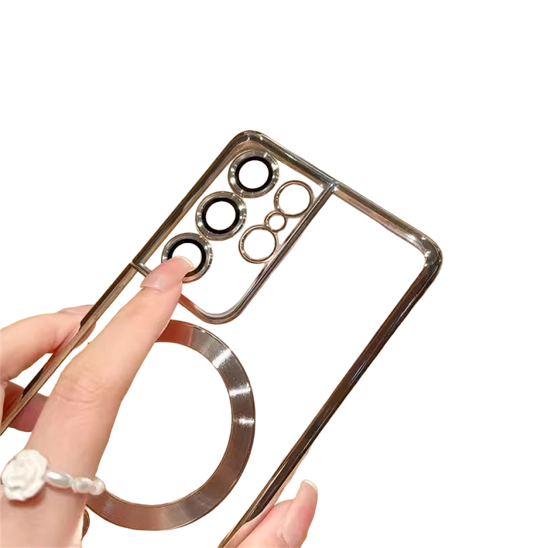 La custodia trasparente con bordi placcati e supporto MagSafe per Samsung Galaxy S22 Ultra è l'accessorio ideale per il tuo smartphone di alta gamma. Questa custodia è stata progettata con attenzione a protezione, design e compatibilità con la tecnologia MagSafe.