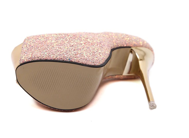 Queste décolleté di alta qualità in versione glitterata con punta aperta sono molto comode.