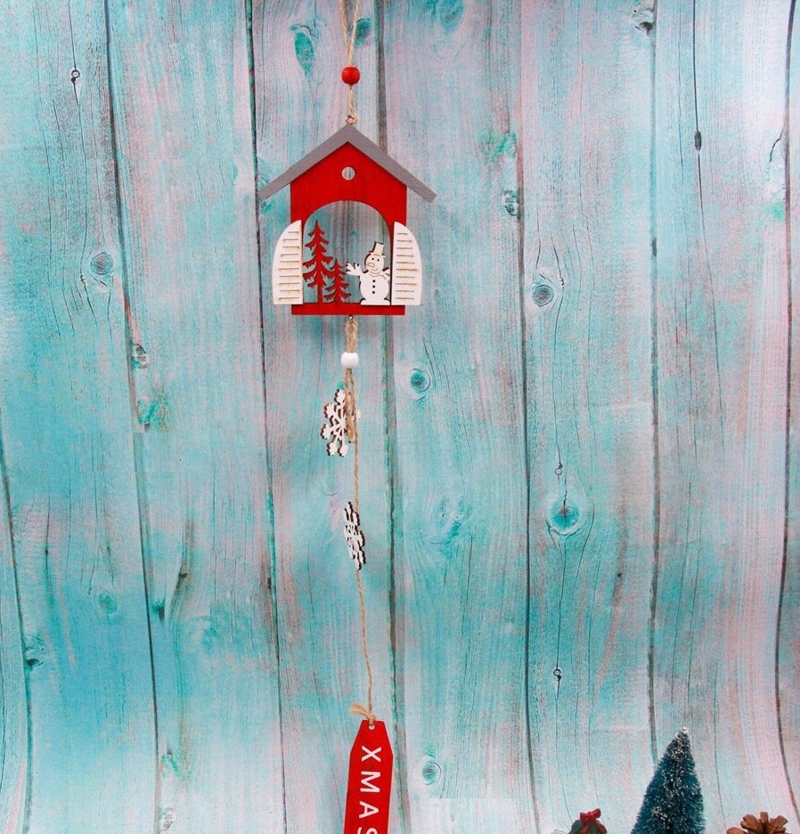 Decorazione natalizia appesa - casetta in legno con decorazioni.