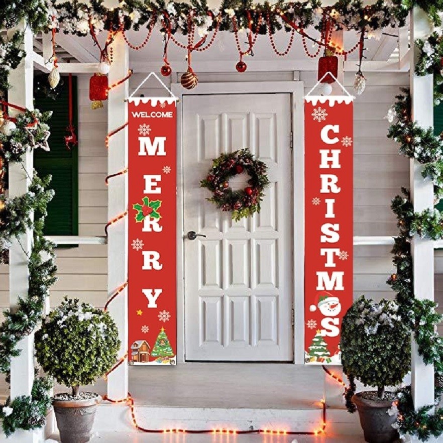 Originale decorazione appesa per porte in due parti con iscrizione natalizia.