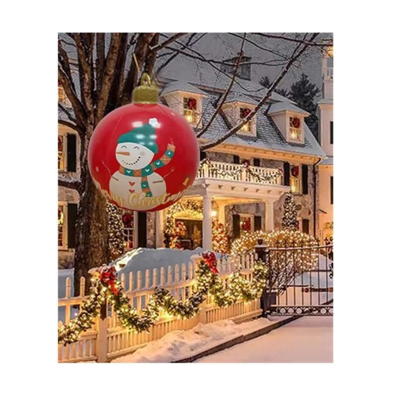 Decorazione natalizia gonfiabile 60 x 80 cm Palla gigante in PVC con pupazzo di neve Decorazione sospesa impermeabile per festività invernali e feste