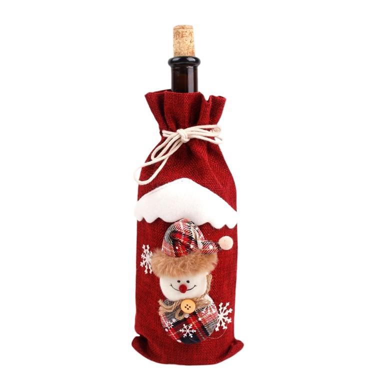 Abbellisci la tua bottiglia con questa decorazione con pupazzi di neve cuciti e Babbo Natale.