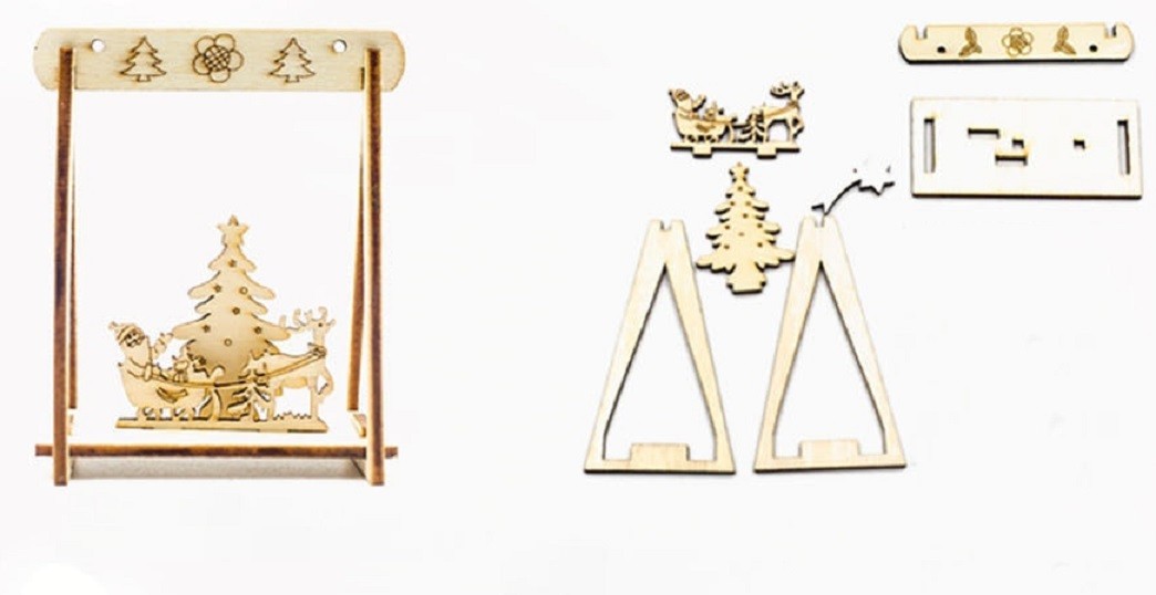 Krásná skládací vánoční dekorace vyřezávaná ze dřeva.