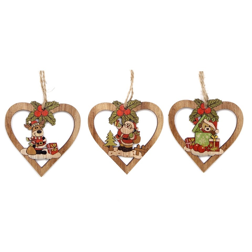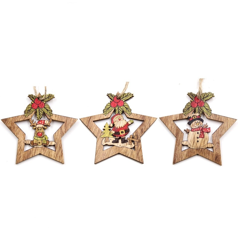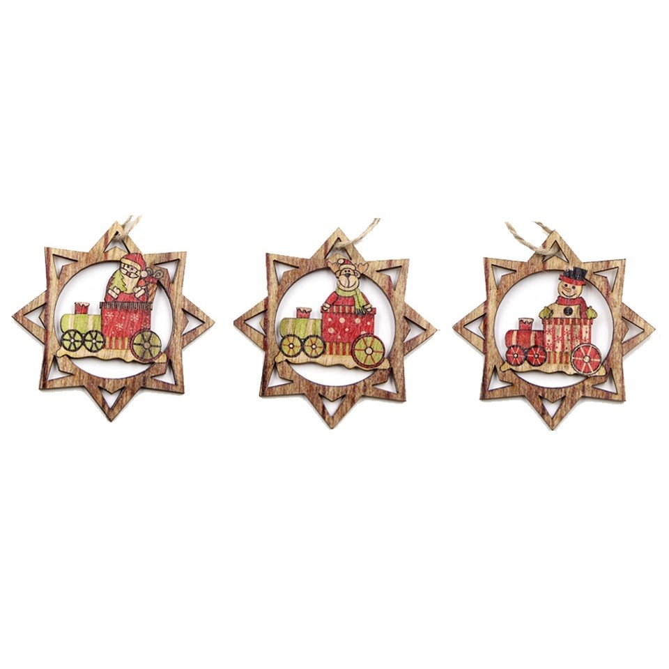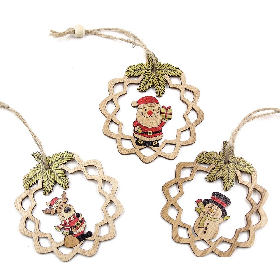 Decorazioni natalizie appese intagliate in legno - vari tipi.