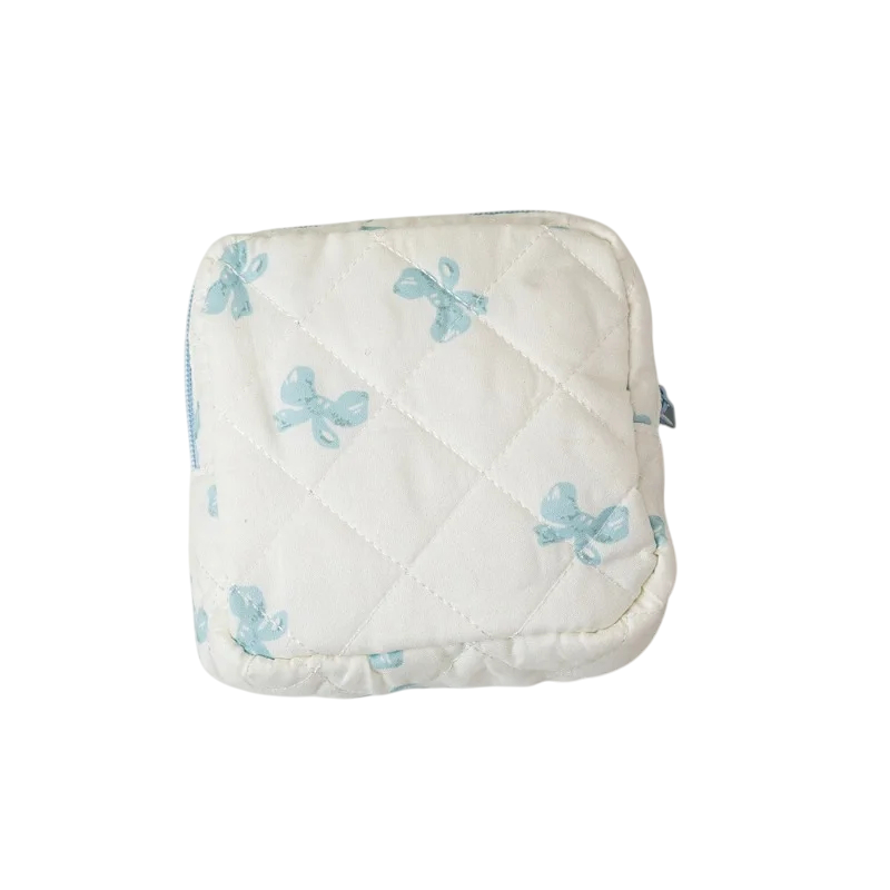 Deliziosa borsa portatile per assorbenti e tamponi 12,5 x 5 x 12,5 cm Organizzatore con zip Sacchetto in poliestere con fiocco