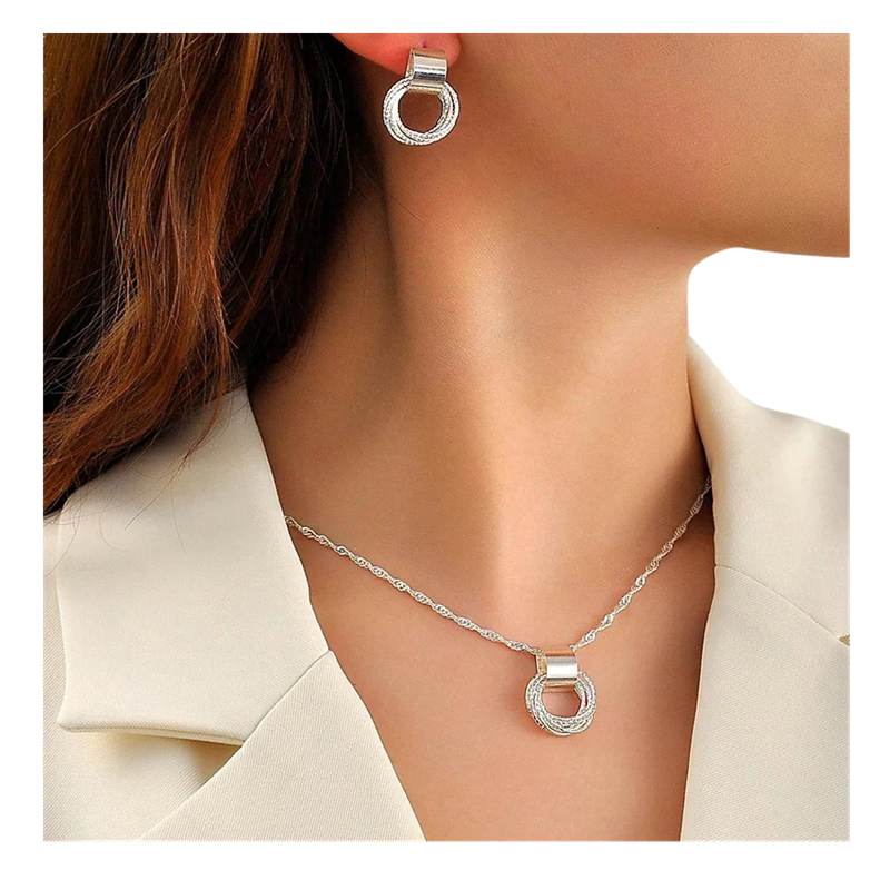 Pagina iniziale Pagina iniziale Gioielli e orologi Gioielli e orologi da donna Collane e catenine da donna Design circolare orecchini e collana 43+5 cm 2.3 cm Set di gioielli in rame elegante coordinato per feste matrimoni regalo