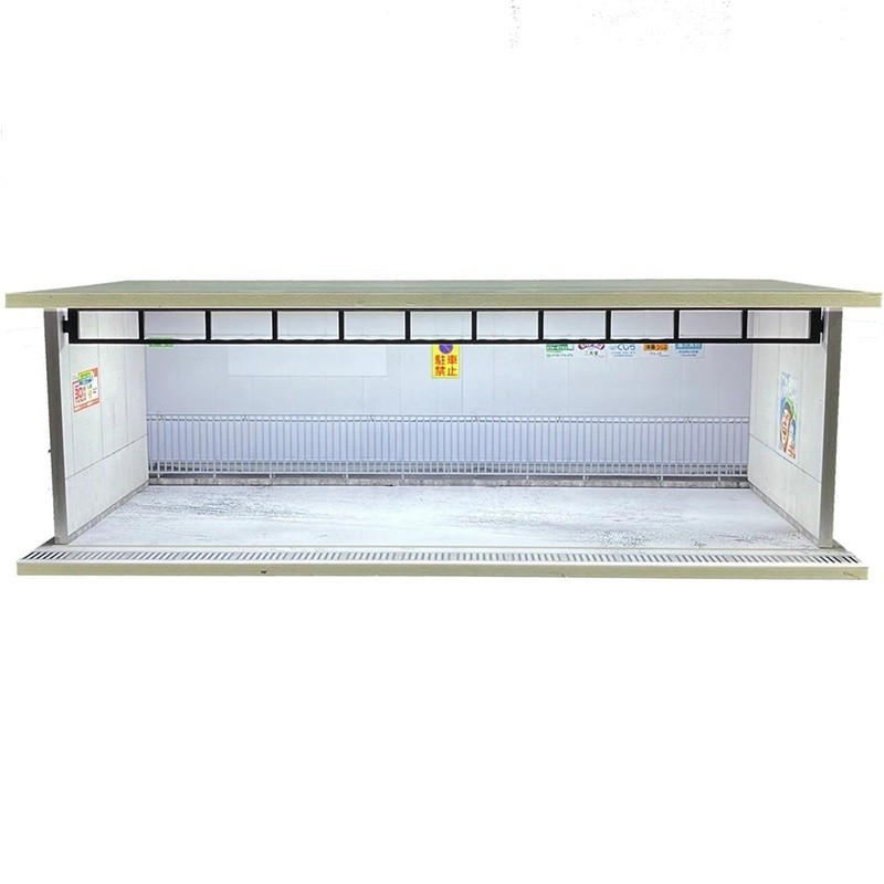 Pagina iniziale Pagina iniziale Tutto per bambini Giocattoli per bambini Macchinine Diorama espositivo garage per modelli di auto 30 x 13,5 x 10 cm Scala 1:64 Edificio bianco con parapetto e manifesti PVC ABS sfondo espositivo