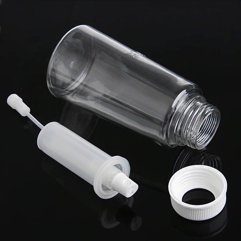 Questa bottiglia di plastica con spruzzatore è adatta per olio o aceto.