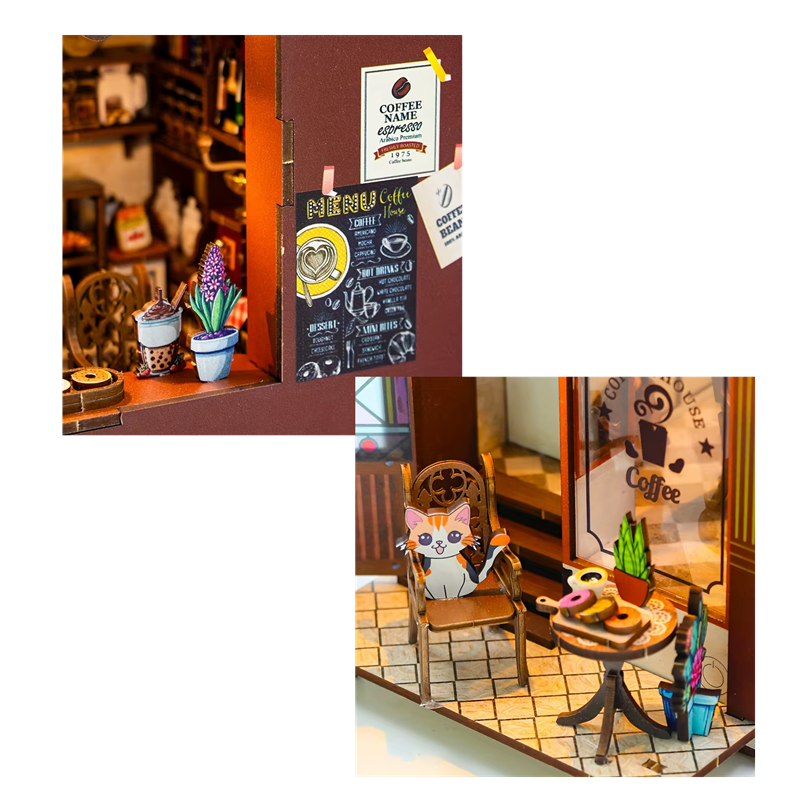 Assemblando la casetta, creerai un bell'oggetto decorativo che sarà un ornamento per ogni interno. Elementi dettagliatamente lavorati e abbinamenti di colori appaiono realistici e gradevoli, rendendolo non solo un giocattolo, ma anche una decorazione. Illuminazione LED mette in risalto i dettagli e crea atmosfera, specialmente nelle ore serali. Adatto come regalo originale per anime creative, siano esse bambini o adulti. Questo modello unisce estetica, creatività e relax in un'unica confezione.
