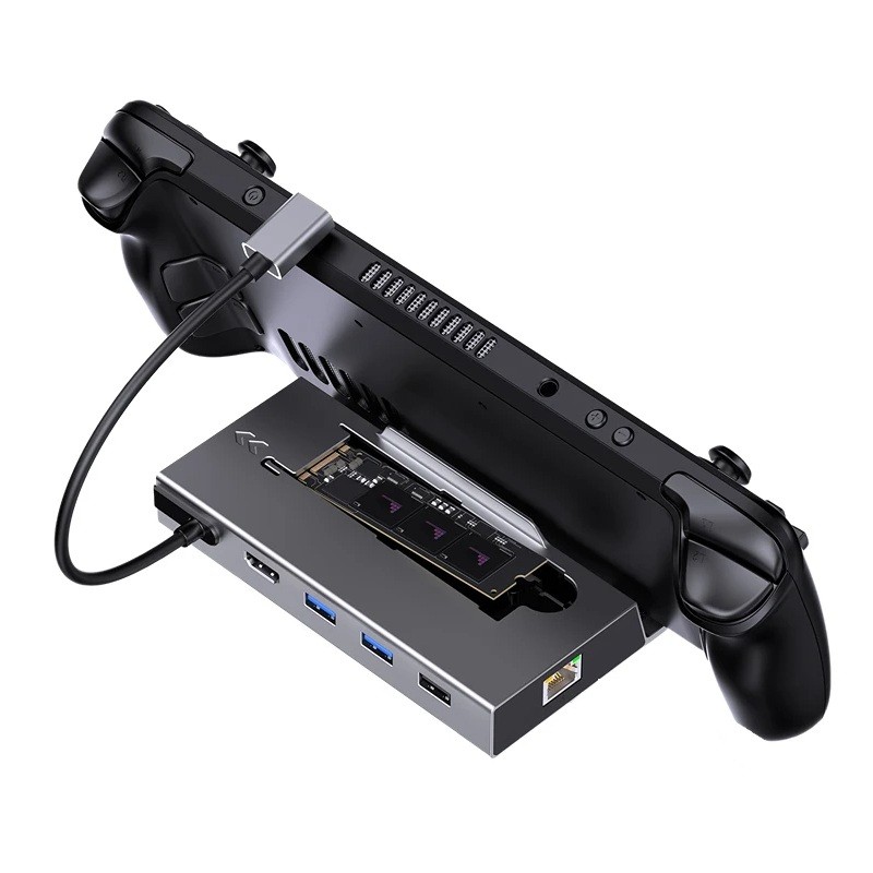 Docking Station 7 in 1 per Steam Deck e Nintendo Switch 13,9 x 9,4 x 2,8 cm HDMI 4K 60Hz PD 100W USB-C RJ45 M.2 5Gbps USB 3.0 USB 2.0