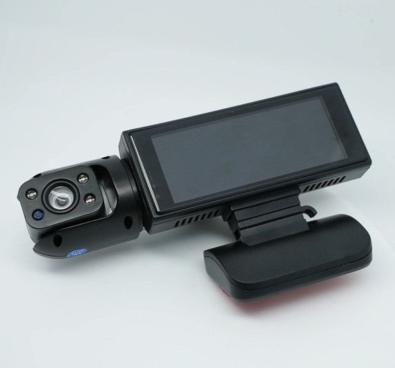 Il dispositivo è dotato di un obiettivo doppio: la telecamera anteriore riprende la strada davanti al veicolo e la seconda telecamera riprende l'interno dell'auto. La visione notturna con illuminazione a infrarossi garantisce registrazioni di alta qualità anche al buio o in condizioni di scarsa illuminazione. Il sensore G integrato blocca automaticamente le registrazioni importanti in caso di urto o frenata brusca, per evitare che vengano sovrascritte.