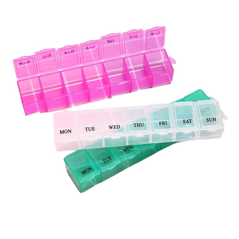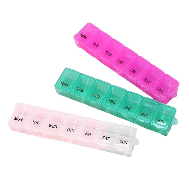 Questo pratico dosiatore settimanale per farmaci serve per un'organizzazione e un dosaggio affidabili dei farmaci o degli integratori alimentari. È suddiviso in singoli giorni della settimana. Grazie alle sue piccole dimensioni, può essere portato ovunque con sé.