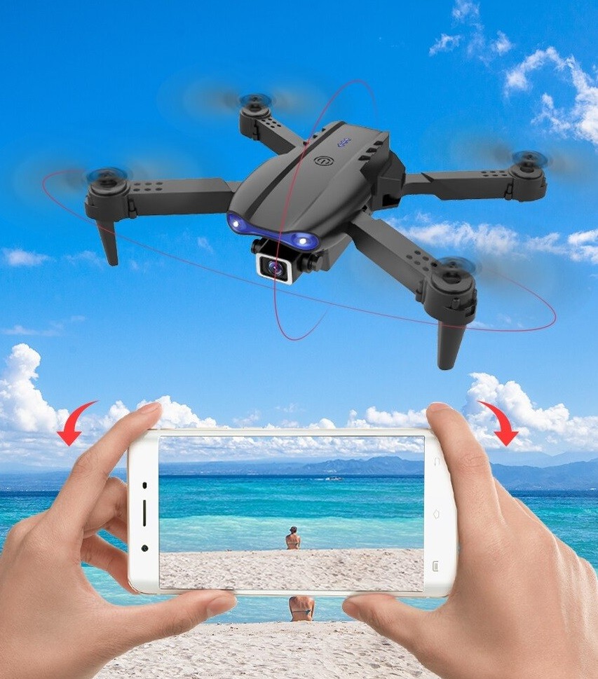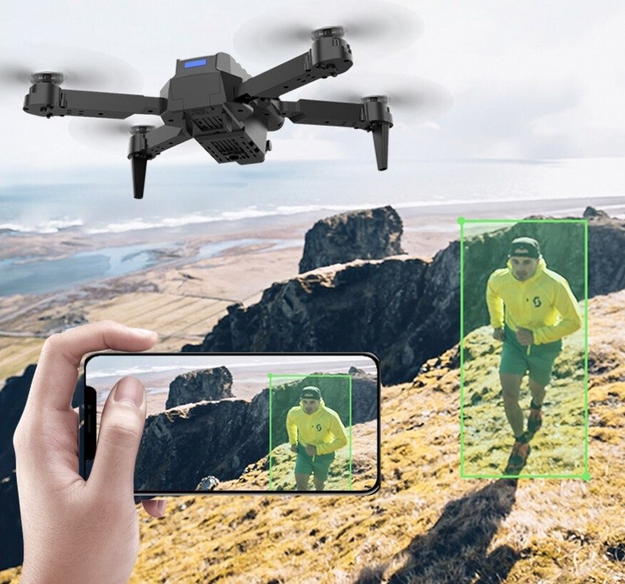 Funzioni intelligenti e dotazione: giroscopio a sei assi, controllo della velocità, WiFi, rotazione a 360°, luci LED, zoom 50x, mantenimento automatico dell'altitudine, trasmissione video in diretta, volo a punto di tracciamento, controllo gestuale, avvio automatico, atterraggio automatico, ritorno automatico con un tasto, modalità senza testa, tracciamento degli oggetti