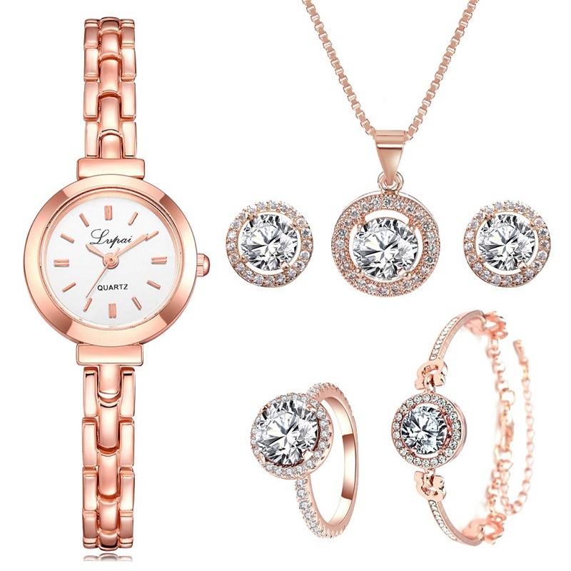 Contenuto della confezione: 1x orologio, 1x collana con ciondolo, 1x bracciale, 1x anello, 1x orecchini