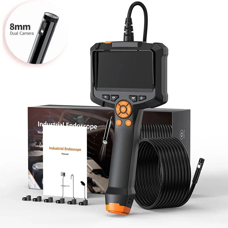 Endoscopio INSKAM con cavo fisso di 5 metri e display da 4.3" è progettato per revisioni professionali. L'obiettivo doppio consente un facile passaggio tra la vista frontale e laterale. La camera con diametro di 8mm cattura immagini nitide a 1080p, arricchite da illuminazione LED con intensità regolabile. Grazie alla protezione impermeabile IP67 e alla batteria da 2000mAh, è in grado di affrontare anche ambienti di lavoro impegnativi.