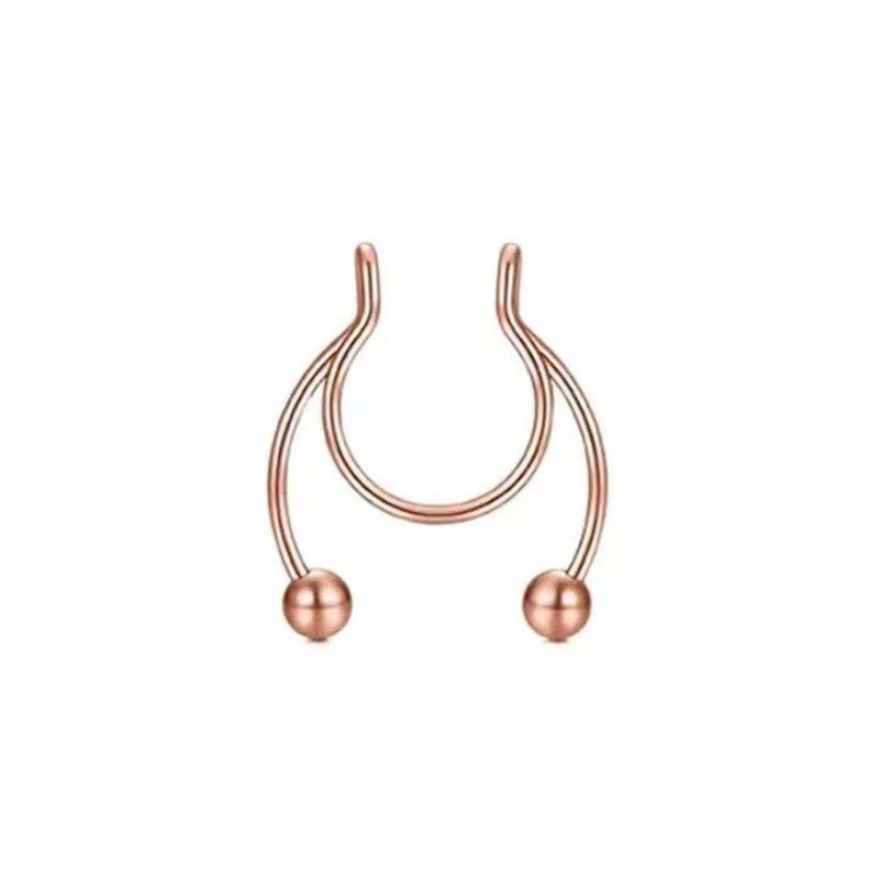 La forma a ferro di cavallo garantisce un indossamento confortevole e sicuro. È la soluzione ideale per chi desidera avere l'aspetto di un naso forato senza dolore. Realizzato in acciaio inossidabile di alta qualità. Questo falso piercing per il naso ti darà sicuramente quel tocco di stile.