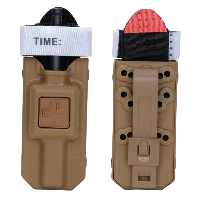 Fascia emostatica tattica con custodia per cintura Turniket tattico per applicazione a una mano Cinghia di serraggio Mandrino in plastica 12 x 6 cm