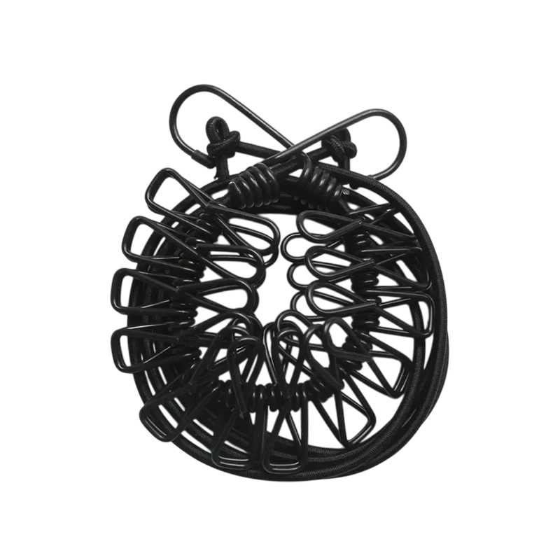 Questo filo è un pratico aiuto per chiunque abbia bisogno di asciugare rapidamente e facilmente il bucato ovunque in viaggio o a casa. Grazie ai ganci alle estremità, il fissaggio è questione di pochi secondi e le mollette tengono bene anche in caso di vento. Il suo design compatto garantisce facile trasporto e stoccaggio. È adatto sia per singoli che per famiglie con bambini. Risparmia spazio, tempo e preoccupazioni per asciugare il bucato in condizioni improvvisate.
