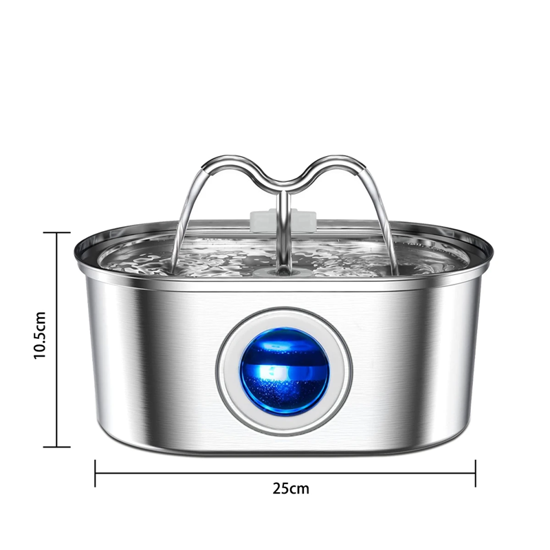 La fontana in acciaio inossidabile supporta una bevanda sana per i gatti, ha un funzionamento silenzioso sotto i 20 dB, luce LED, doppia filtrazione e una capacità di 3,2 litri. Descrizione completa