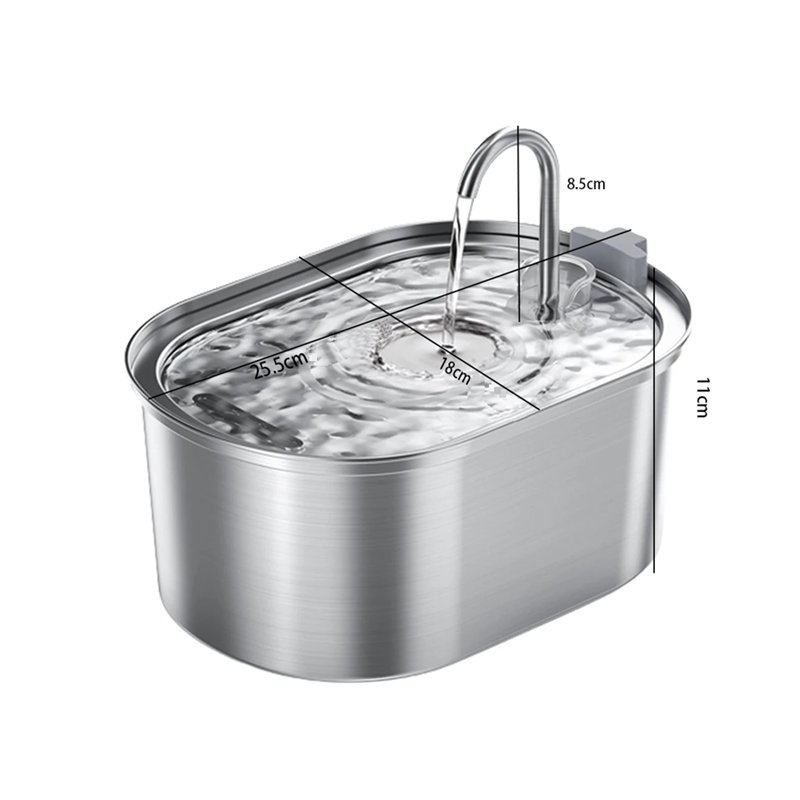 Questa fontana per gatti intelligente fornisce al tuo animale domestico acqua fresca, filtrata e corrente, che supporta l'idratazione e uno stile di vita sano. Capacità di 3,2 litri è ideale per l'uso quotidiano e per più animali domestici. Flusso d'acqua dinamico stimola l'istinto naturale dei gatti a bere più frequentemente, aiutando a prevenire problemi renali e della vescica. La fontana è realizzata in acciaio inossidabile di alta qualità, che è igienico e facile da pulire. Pompa super silenziosa con potenza di 1,5 W e rumorosità sotto i 20 dB garantisce un funzionamento tranquillo che non disturberà nemmeno di notte.