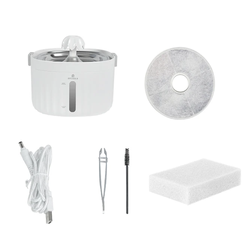 • Contenuto della confezione: 1× fontanella per animali domestici, 1× filtro in carbonio, 1× kit di pulizia (spazzola, pinzette, spugna), 1× manuale
