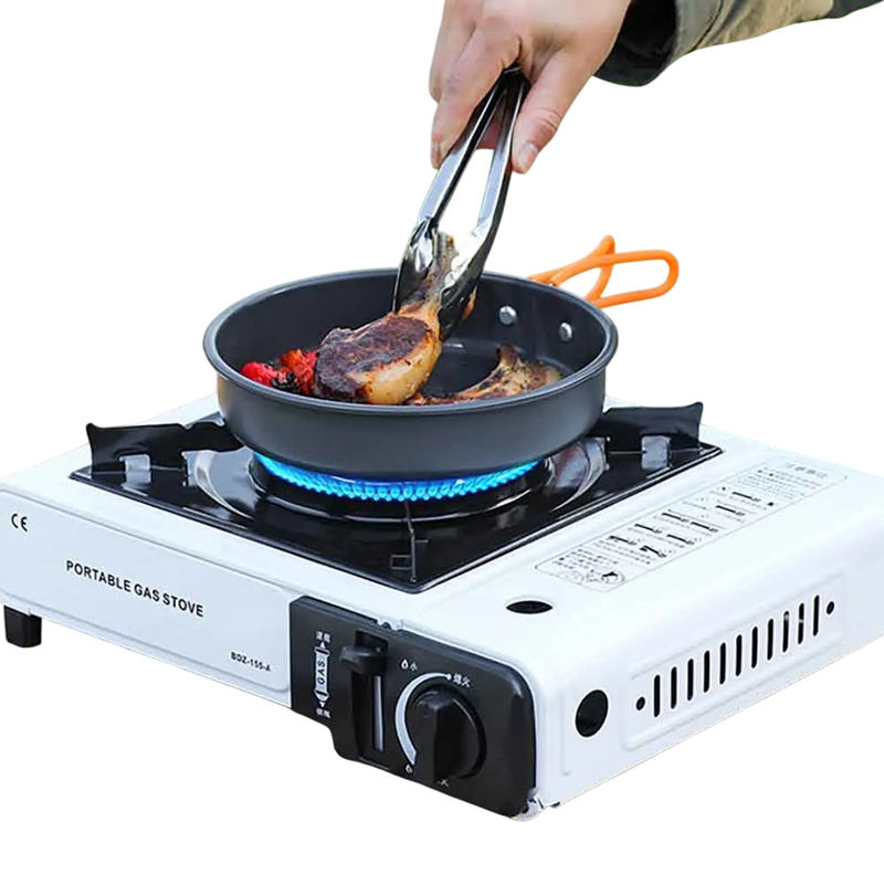 Pratico fornello da campeggio con dimensioni compatte e scatola di trasporto, ideale per campeggio, escursioni e cucina all'aperto. Descrizione completa